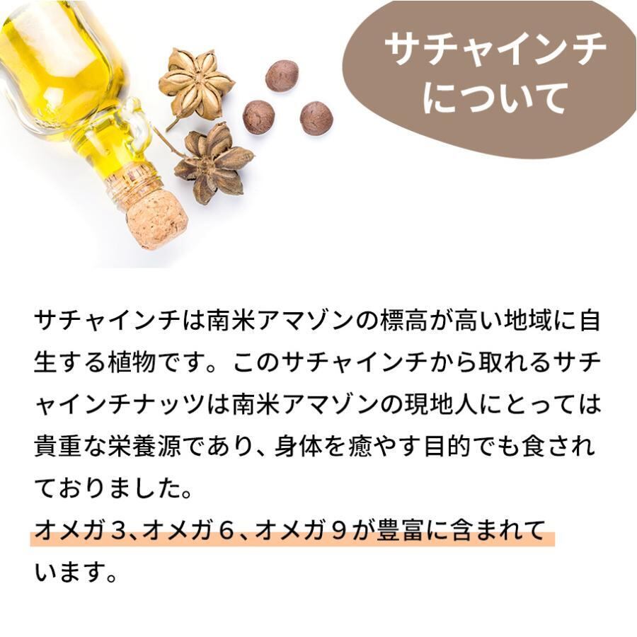 南米アマゾンの現地人にとって、貴重な栄養素となっているサチャインチナッツというスーパーフードを、低温圧搾一番搾りで製法オイル化したものになります。