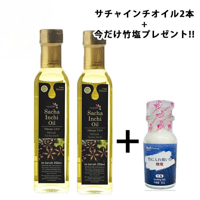 【賞味期限2026.3.25の為】サチャインチオイル250ml×2本+1本 今だけ竹塩1個プレゼント MCTオイル オメガ3脂肪酸 ビタミンE 低温圧搾 コールドプレス お中元 父の日 母の日 敬老の日 お歳暮 こどもの日 お盆