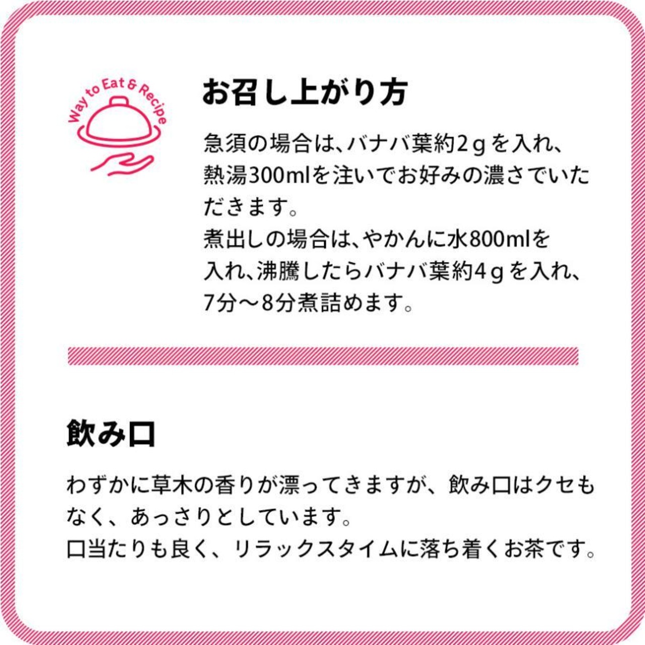 急須の場合は、バナバ葉約2gを入れ、熱湯300mlを注いでお好みの濃さでいただきます。
