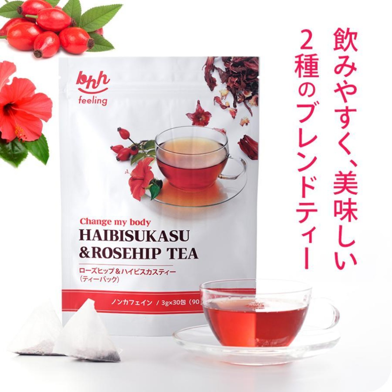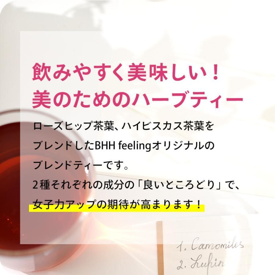 ローズヒップ茶葉、ハイビスカス茶葉をブレンドしたBHH feelingオリジナルのブレンドティーです。