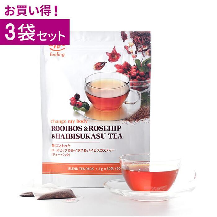 【お得な3袋セット】お茶を飲んでキレイになろう 美ボディ ルイボス&ローズヒップ&ハイビスカスティー ティーパック 3g×30包3袋セット 健康 美容 ビタミン