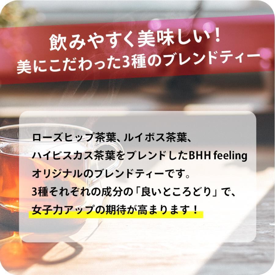 ローズヒップ茶葉、ルイボス茶葉、ハイビスカス茶葉をブレンドしたBHH feelingオリジナルのブレンドティーです。