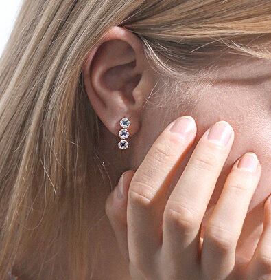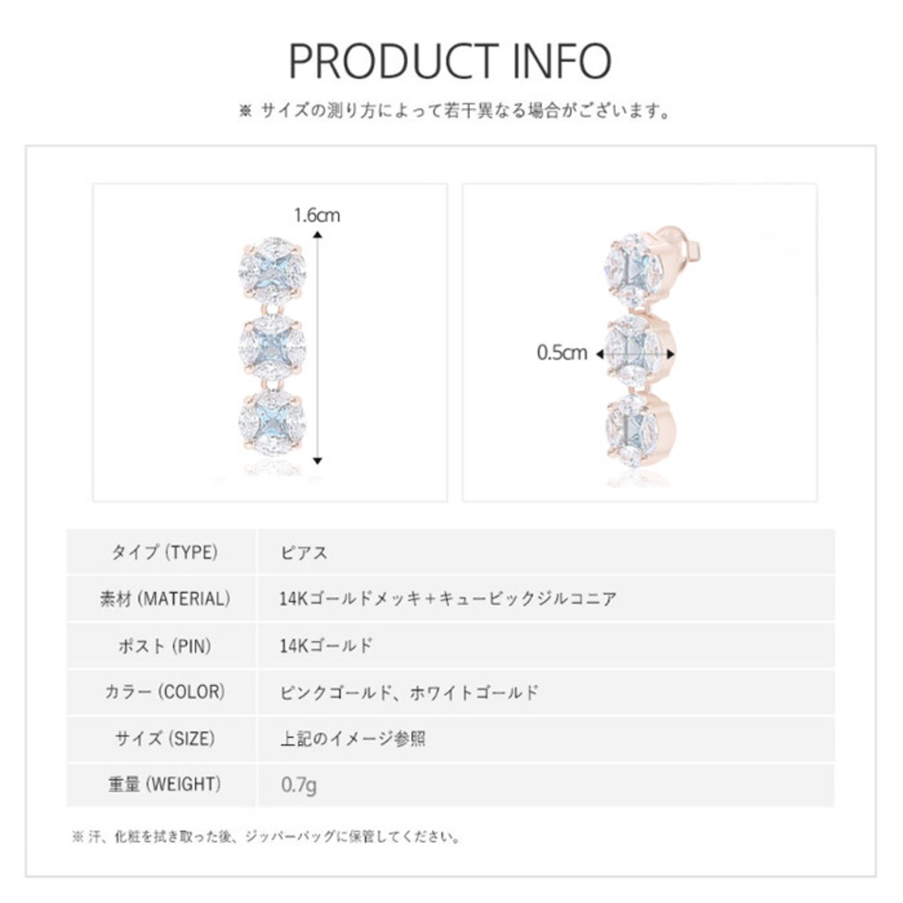 【14Kブルークリスタルピアス】さわやかなクリスタルブルーカラーの豪華なピアス 3連で縦長いかわいいデザイン さりげないおしゃれに最適【EA3113】