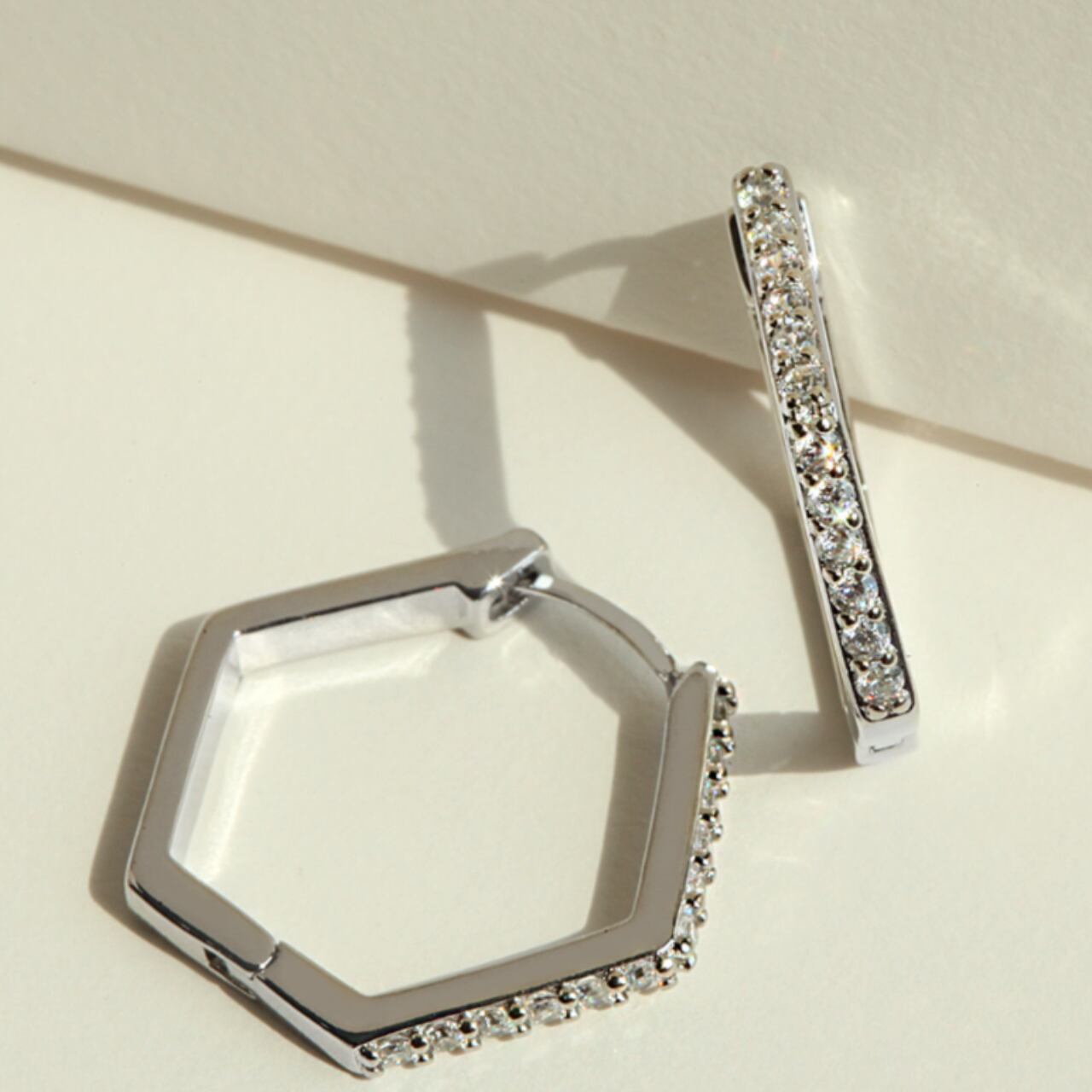 六角形の輝くジルコニアが、どんなシーンでも輝きを放ちます。