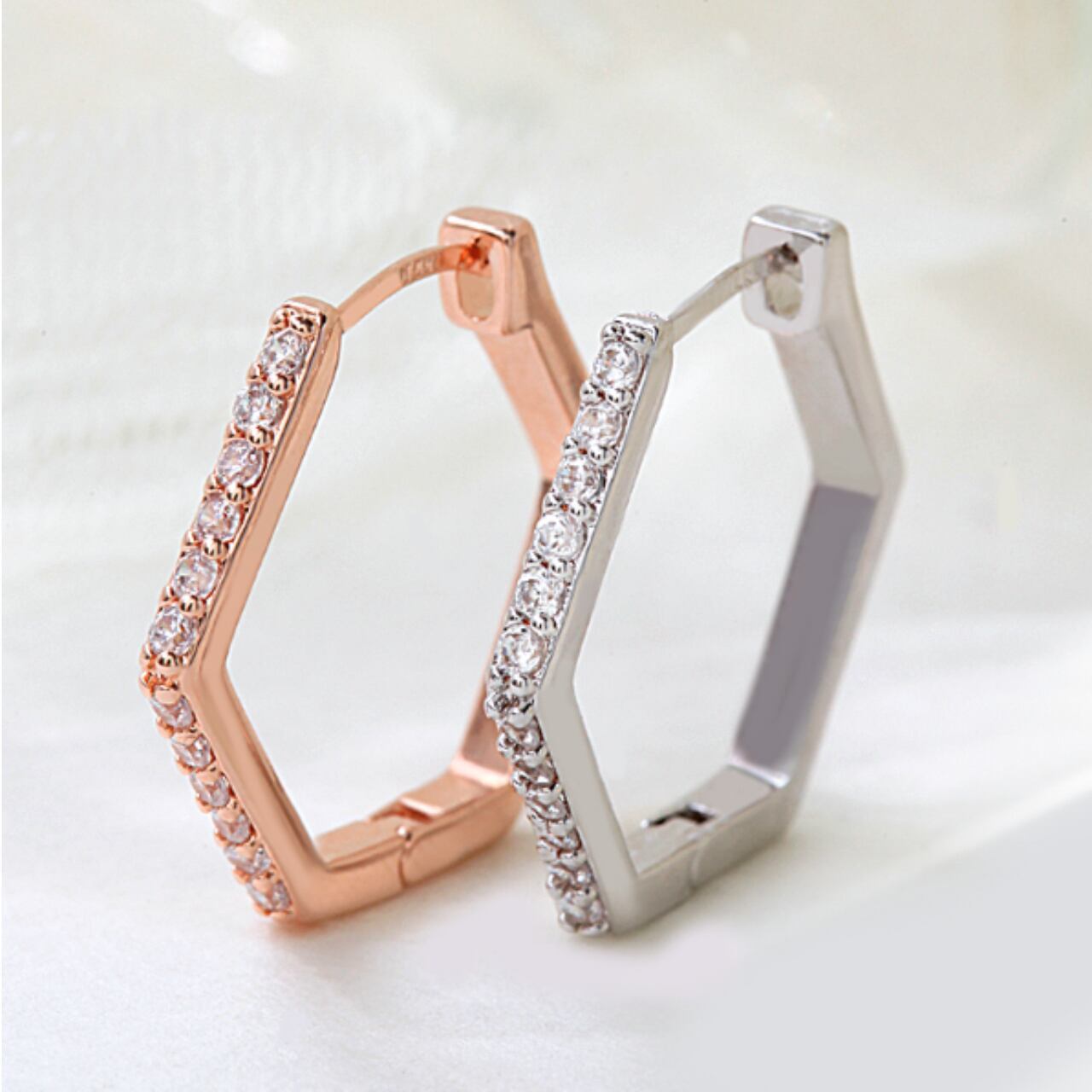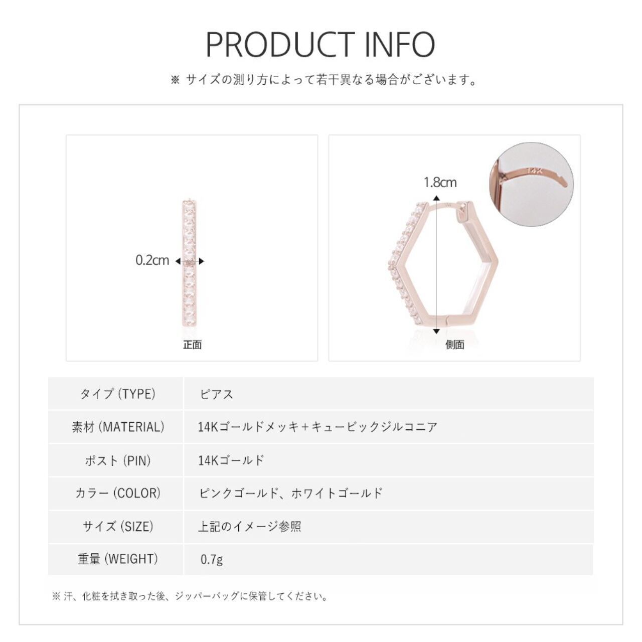 【14Kデイブ六角リングワンタッチピアス】六角形にキラキラ輝くジルコニアが大人っぽいデザイン!華やかなのに華奢でかわいい!毎日着用できる!【EA1478】