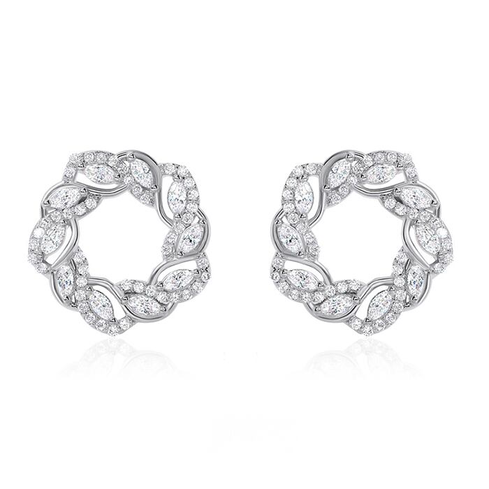 14Kキュービックとリースデザインが組み合わさった華やかでフェミニンなピアス。