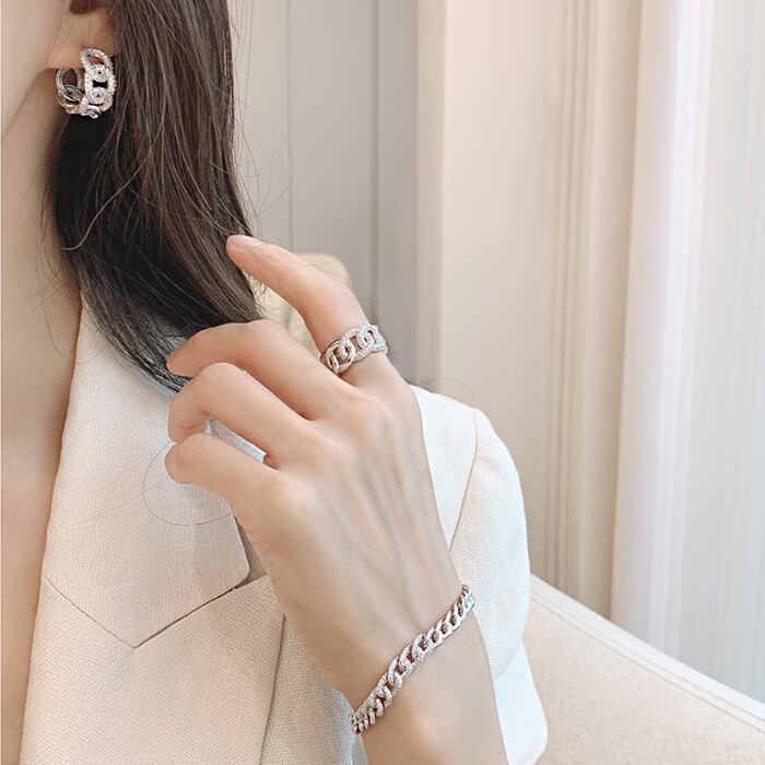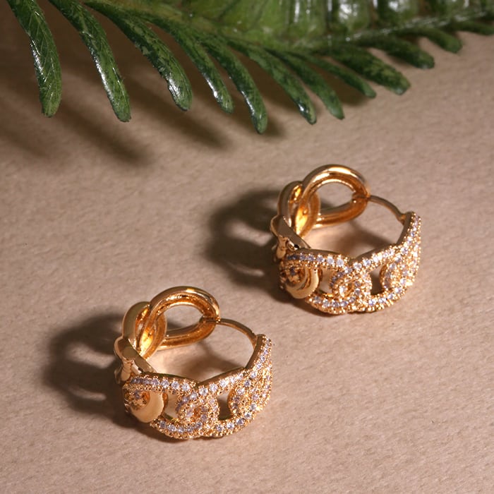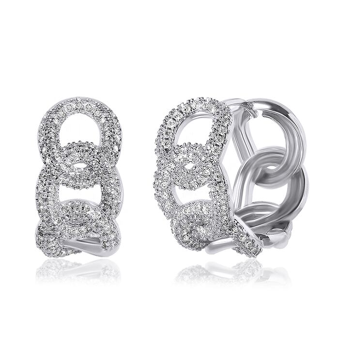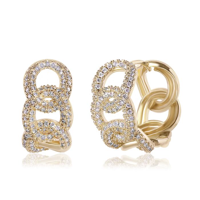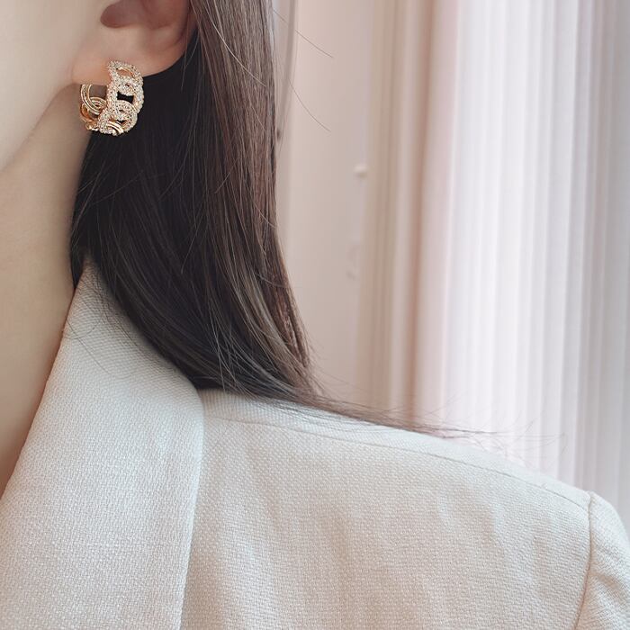 【14Kレウィシアボールドワンタッチリングピアス】トレンド感溢れる太めのチェーンモチーフにストーンが敷き詰められたリングピアス【EA2937】