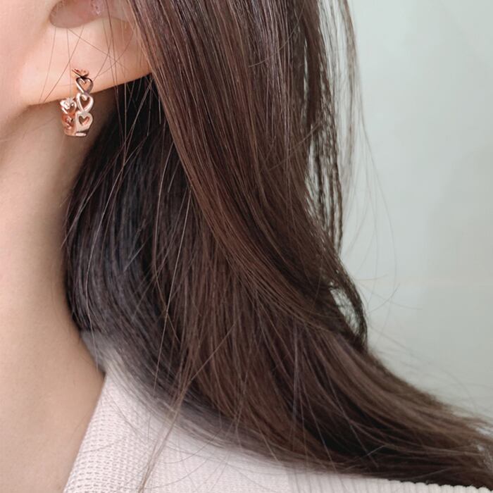 【14Kラブリンハート ワンタッチリングピアス】ラブリーなハートデザインが連なった光沢感と光の反射が華やかなワンタッチ式ピアス フェミニンでもカジュアルでも【EA1923】