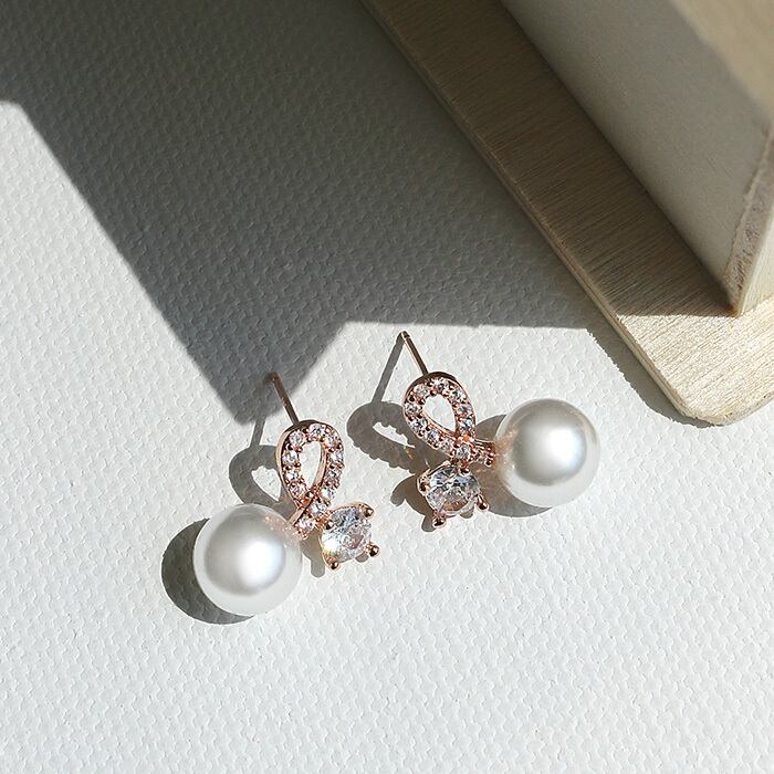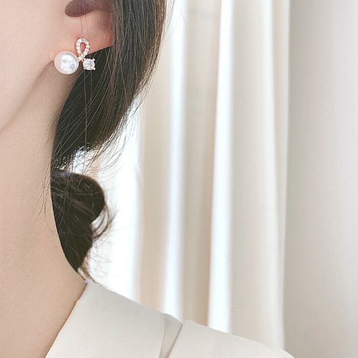繊細なインフィニティ風モチーフが女性らしい柔らかさを引き立て、耳元に華やかな輝きを添えます。