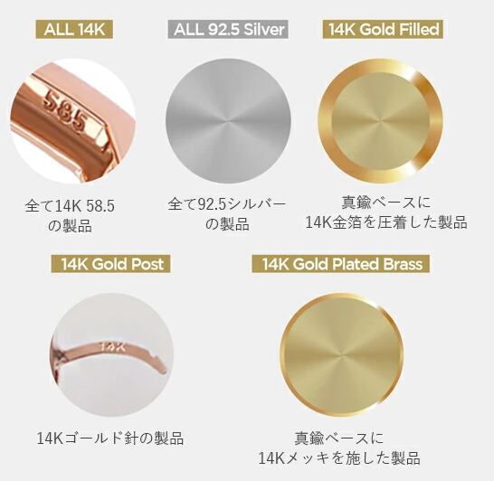 14Kゴールドメッキ仕上げで高級感があり肌馴染みの良いピンクゴールドカラーで、